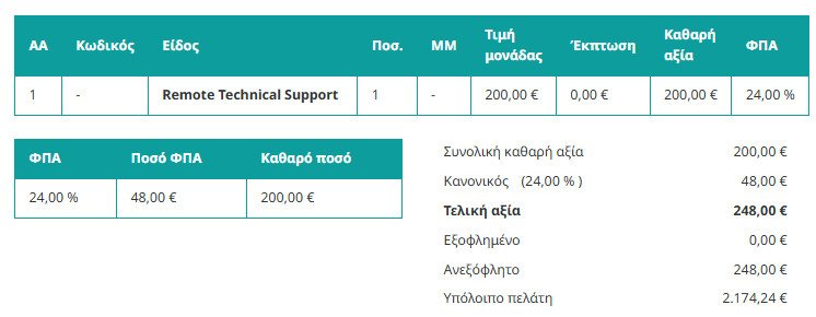 Η εφαρμογή eFluper θα υπολογίσει αυτόματα το συνολικό ποσό, τον ΦΠΑ και την παρακράτηση φόρου.