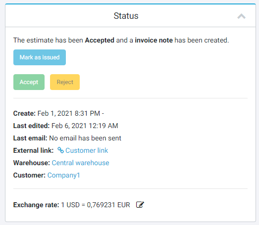 Update it’s status and with one click create the invoice note.
